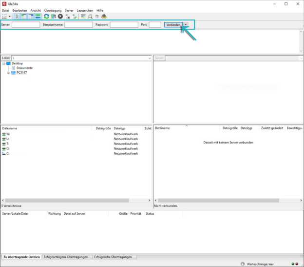 - FileZilla herunterladen und öffnen
